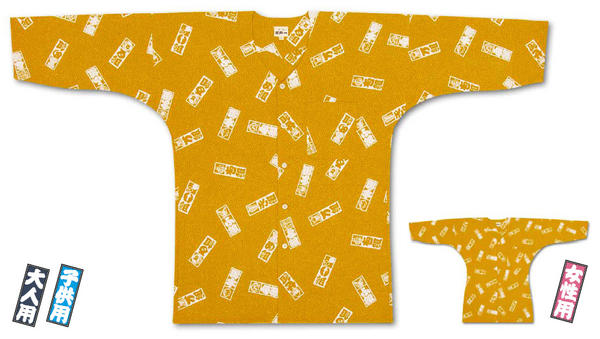 <メール便対応>東京江戸一鯉口シャツ【特選手拭‐金茶まとい】大人用【巾広】女性用【巾広・巾広丈短】[鯉口 シャツ こいくち 祭 衣装 ダボ 居酒屋 ユニフォーム 男性 女性 えどいち]