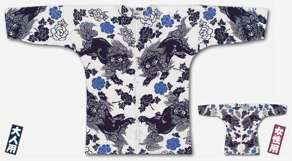 <メール便対応>東京江戸一鯉口シャツ【手拭‐唐獅子青】大人用【特大】女性用【特大】[鯉口 シャツ こいくち 祭 衣装 ダボ 居酒屋 ユニフォーム 男性 女性 えどいち]